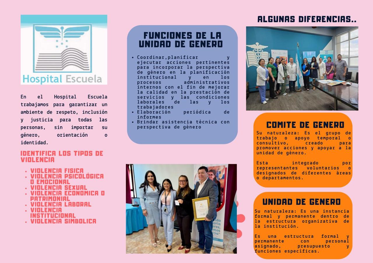Equipo de la Unidad de Género del Hospital Escuela impartiendo la sesión “Unidad de Género del Hospital Escuela: acciones y aportes institucionales”. Auditorio Dr. Enrique Aguilar Paz, Hospital Escuela.