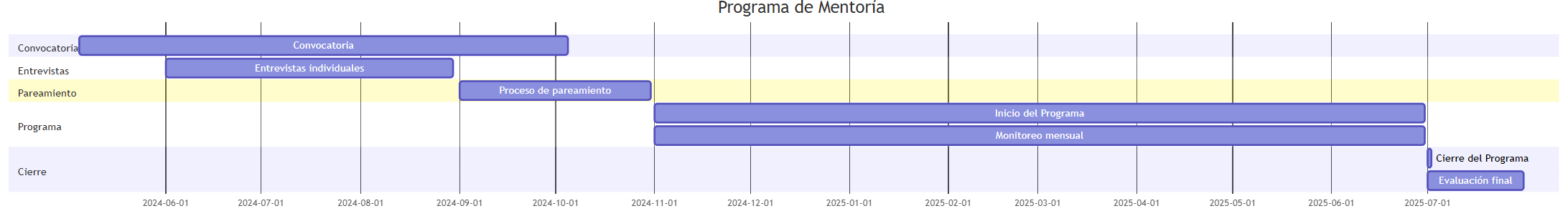 Equipo de coordinación: Responsable de supervisar el desarrollo del programa y evaluar el impacto en mentores y mentoreados.