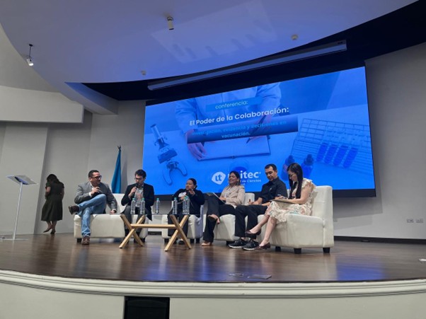 Representantes de UNITEC, la Secretaría de Salud, OPS y TGHN LAC Honduras participaron en el panel “El Poder de la Colaboración: investigación, evidencia y decisiones en vacunación”, durante la Jornada de Investigación en Vacunas realizada en UNITEC, Honduras (noviembre de 2025).