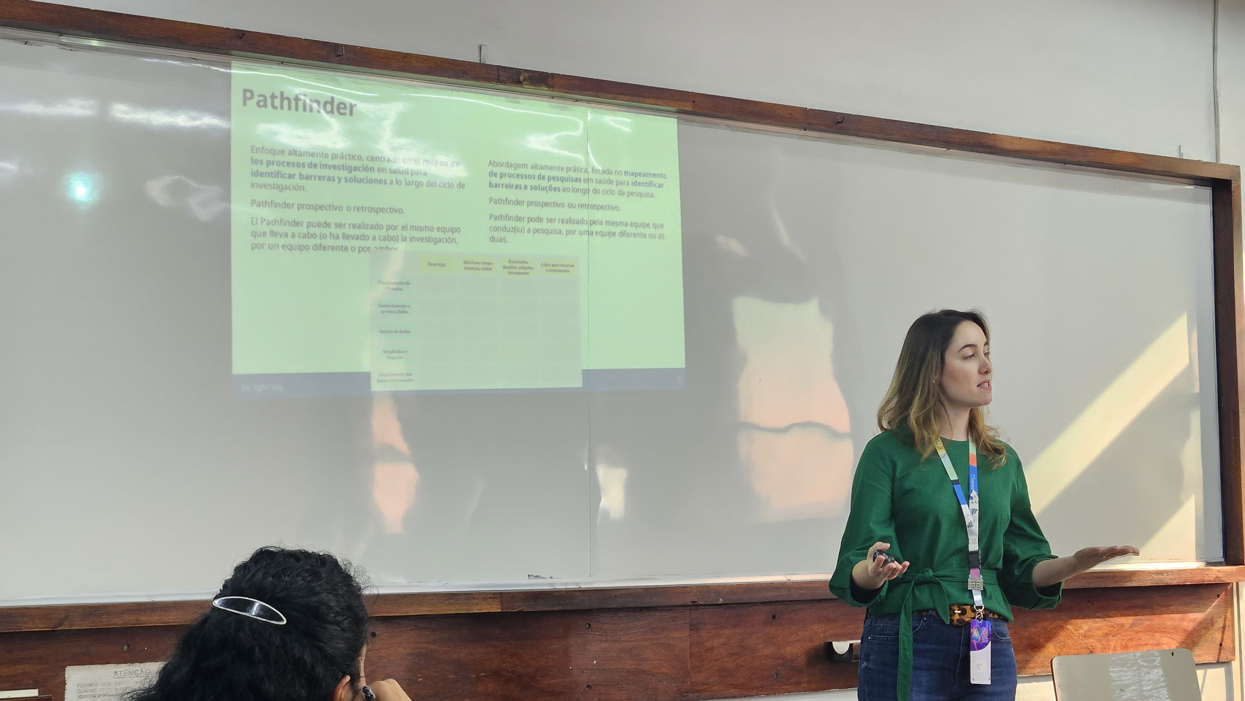 El taller conducido conducido por Larissa Marques, Laís Araújo (Fiocruz) y Luis Felipe Arias (Étikos) presentó la metodología Pathfinder, qué consiste en el mapeo de los ciclos de una investigación en salud para identificar obstáculos, como brechas de competencias, infraestructura tecnológica o limitaciones en sistemas y herramientas de datos, con el objetivo de viabilizar la búsqueda por soluciones e innovaciones para el desarrollo del propio estudio, así como el registro de estas experiencias, de modo que puedan apoyar a otros equipos e investigaciones. El taller ocurrió el 5 de agosto de 2025.