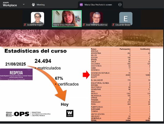 En el evento participaron los profesionales que lideraron la preparación del documento con el apoyo de una serie de colaboradores regionales. La presentación inicial de algunos aspectos primordiales y contextuales del documento, describiendo su estructura por capítulos y contenidos, estuvo a carga de los Doctores José María Gutiérrez, Profesor Emérito Universidad de Costa Rica, y Fan Hui Wen, Instituto Butantan, Brasil. Por otra parte, la Dra. María Elisa Peichoto, Consultora Internacional de la OPS en el área de accidentes por animales venenosos para la región de las Américas, presentó el curso en línea denominado Envenenamientos por serpientes y otros animales venenosos en América Latina y el Caribe basado en el documento e incluyendo el envenenamiento por otros animales venenosos.