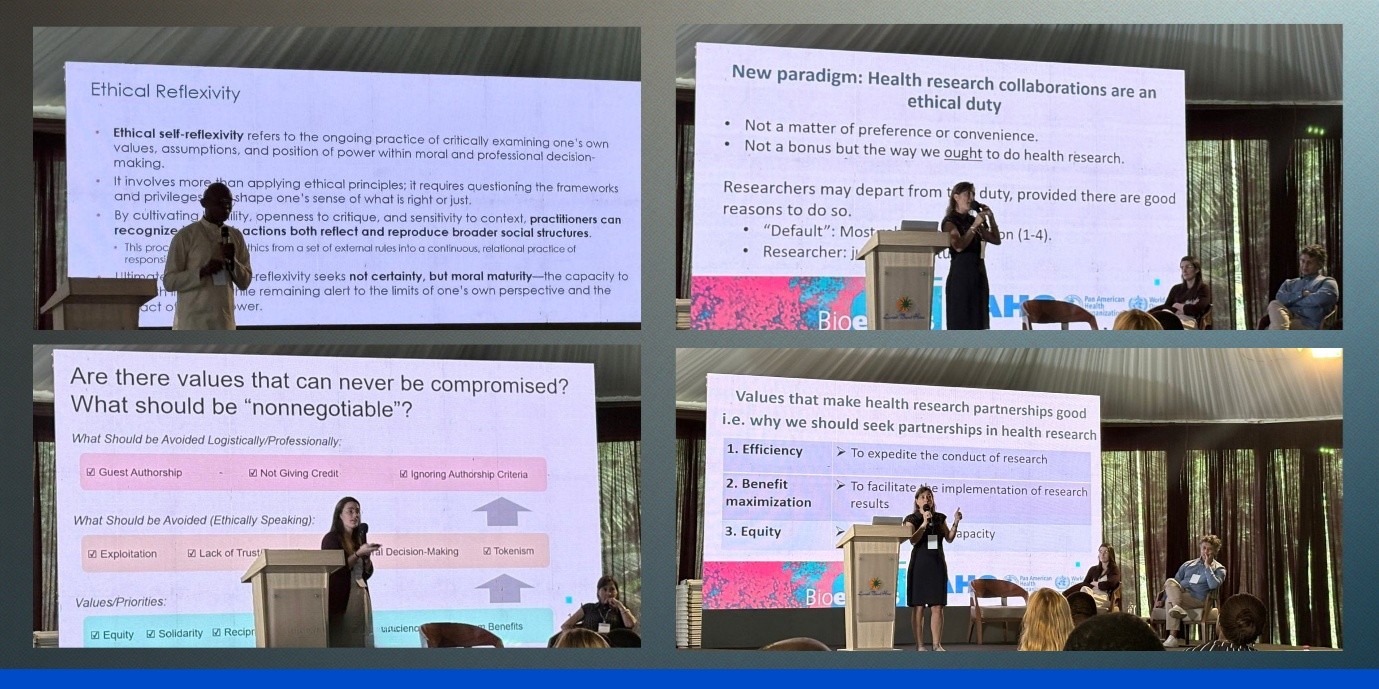 Plenary presentations on responsibility, equity and new ethical perspectives on health research partnerships during GFBR 2025.