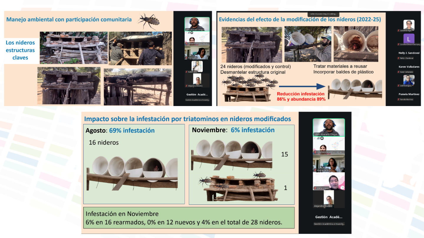 El tema central del encuentro fue la presentación titulada “Implementación de una estrategia participativa de manejo ambiental para el control del vector de Chagas en el Chaco argentino”, a cargo de Julián Alvarado, Carla Cecere y Alejandra Alvedro.