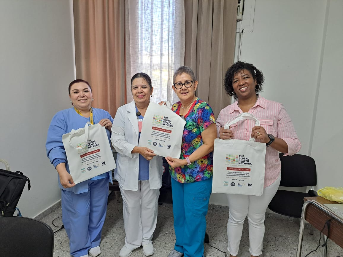 Sesión de Clínica de Datos Abierta, The Global Health Network LAC, Facultad de Ciencias Médicas (FCM), Universidad Nacional Autónoma de Honduras (UNAH), 21 de noviembre de 2025. Docentes del Postgrado de Enfermería, FCM UNAH: Lic. Enf.Gisela Salgado, Lic. Enf. Ela Márquez, Lic. Enf. Karla Bodden; Lic. Enf. Xiomara Medina, Unidad de Investigación y Gestión Académica, Hospital Escuela.