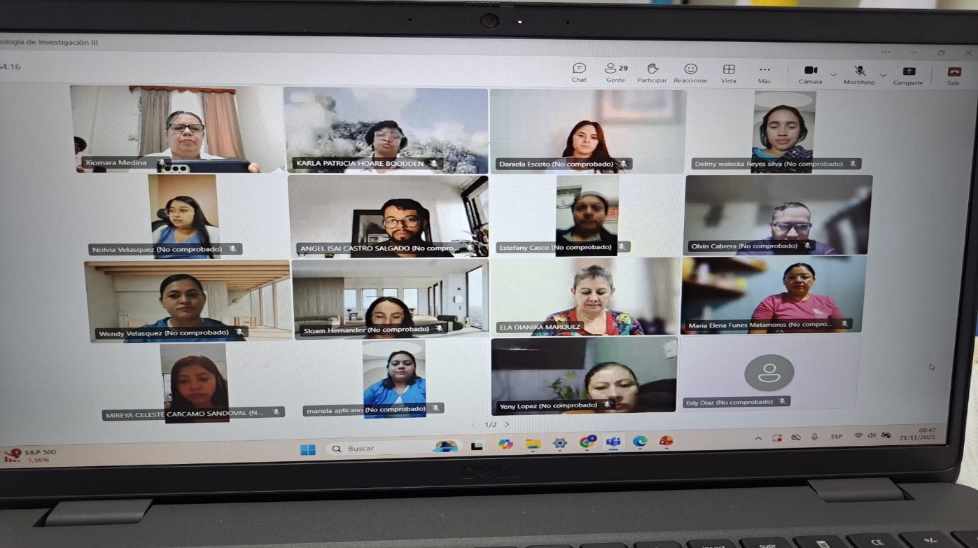 Dicha actividad se realizó de manera virtual, el 23 de septiembre del 2025, en donde participaron 6 profesionales de enfermería representantes del Instituto Nacional Cardiopulmonar (INCP) y el Centro Hondureño para el Niño Quemado (CEHNIQ).