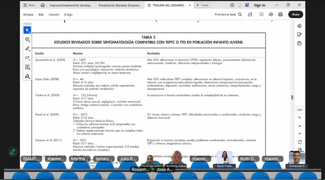 Preparar y moderar una sesión sobre trauma de desarrollo . |