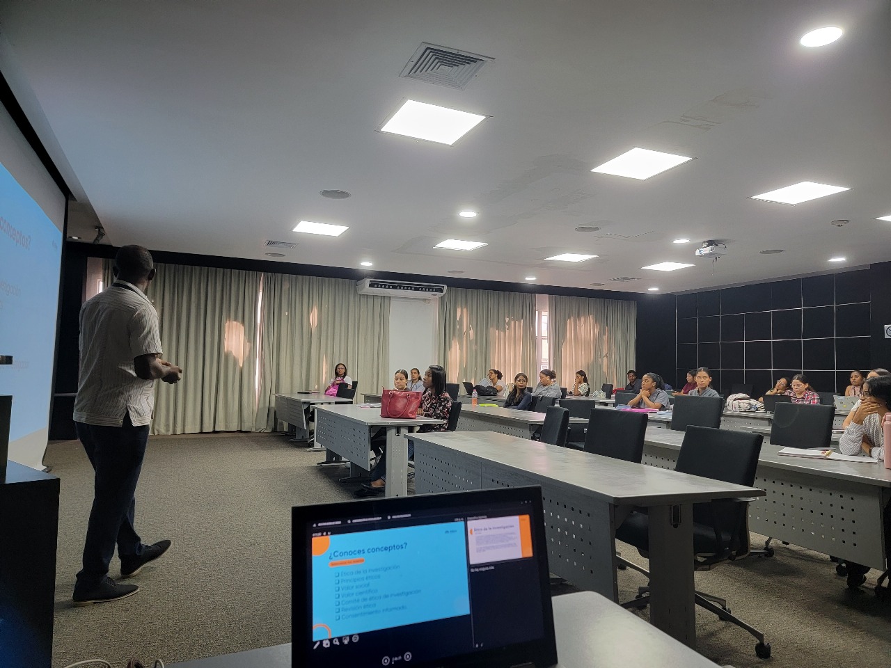 El día 16 de junio de 2024, se llevó a cabo de manera presencial en un sala de conferencia de la biblioteca Pedro Mir de la Universidad Autónoma de Santo Domingo (UASD) la presentación titulada “Investigación Éticamente Responsable”, dirigida a los participantes del Fellowship de Investigación de la UASD.