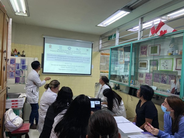 La Asociación Hondureña de Parasitología (AHPA), en conjunto con el Instituto Antonio Vidal (IAV) y el Servicio de Parasitología, Hospital Escuela, Tegucigalpa, Honduras, está desarrollando una serie de talleres para fortalecer el diagnostico parasitológico orientado a personal de laboratorio del Hospital Escuela y otras instituciones de Salud Pública, en el marco del Consorcio The Global Health Network Latinoamérica y el Caribe (TGHN LAC). Estas actividades iniciaron en el año 2024 y se continúa en el año 2025 desarrollando una serie de talleres de 4 temáticas para un grupo de participantes. Durante el periodo de agosto a noviembre de 2025 se desarrollaron n= 10 talleres.