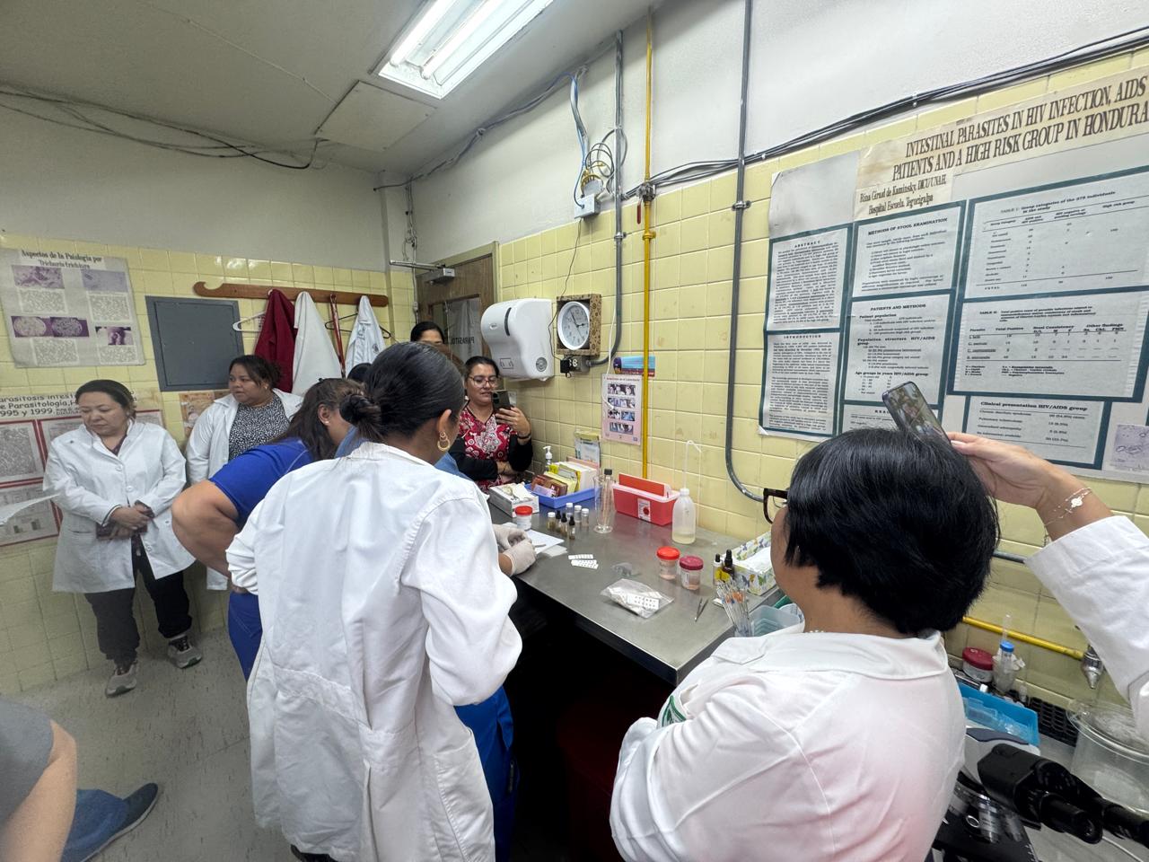Fortalecer el diagnostico de parasitosis causadas por amebas, protozoos Apicomplexa intestinales, helmintos y malaria entre personal de laboratorio del Hospital Escuela e instituciones afines (Hospital San Felipe, Centro Integral de Salud Alonzo Suazo, Laboratorio Nacional, Instituto Hondureño de Seguridad Social e Instituto Nacional Cardiopulmonar El Tórax)