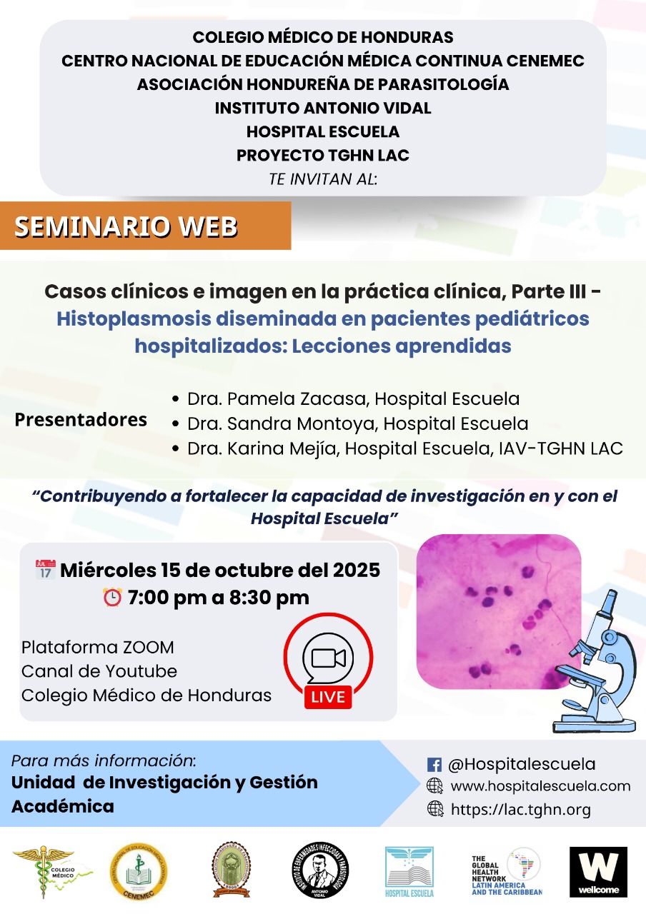 No fue posible realizar transmisión en YouTube porque la página presentó problemas de conectividad, el seminario fue grabado y subido posteriormente al canal YouTube del Colegio Médico de Honduras.