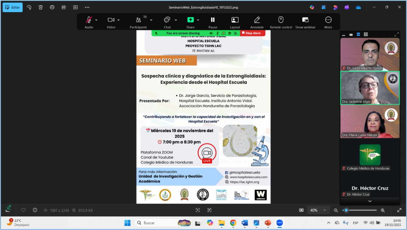 8 participantes en transmisión en canal YouTube del Colegio Médico de Honduras.