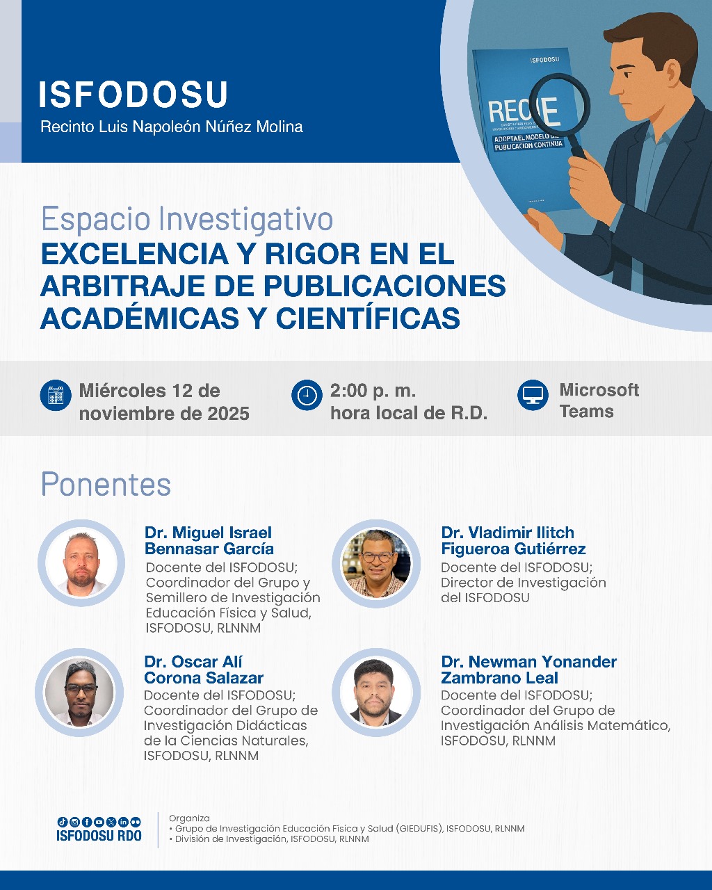 During the session, distinguished lecturers and researchers from ISFODOSU will discuss the challenges and best practices in the peer review processes of academic and scientific publications.