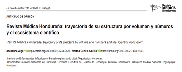 Alger J, García MC. Revista Médica Hondureña: trayectoria de su estructura por volumen y números y el ecosistema científico. Rev Méd Hondur. 2025; 93 (Supl. 3). xx. DOI: https://doi.org/10.5377/rmh.v93iSupl.3.21276