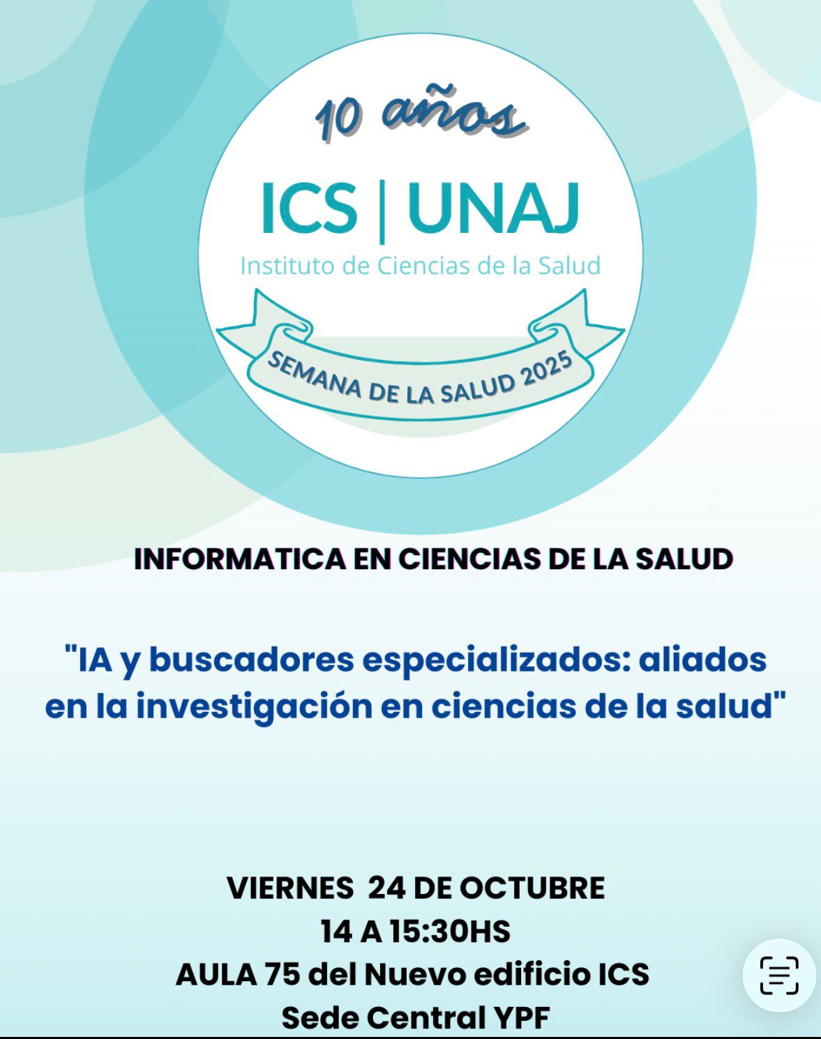 La Lic. Esp. Mariana Campos discute sobre el uso de la “IA y buscadores especializados: aliados en la investigación en ciencias de la salud” en el marco de la 10ma Edición de la Semana de la Salud “Vicente Ierace” – Del 20 al 24 de octubre de 2025 – Universidad Nacional Arturo Jauretche.