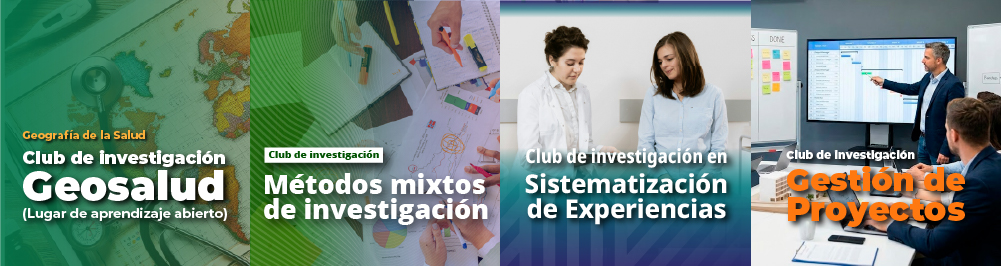 - Sistematización de experiencias en salud: Un club diseñado para transformar la práctica cotidiana en conocimiento científico, donde se rescatan las lecciones aprendidas de intervenciones y programas de salud. Dentro de los temas trabajados se encuentra la sistematización de experiencias en sectores público y privado, la socialización de un protocolo de investigación y la presentación de casos y experiencias reales.