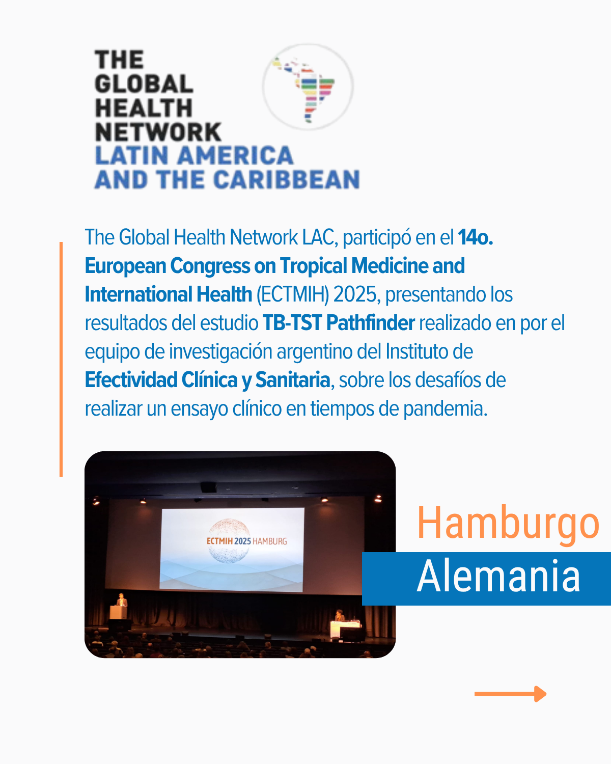 The Global Health Network Latin America took part in the European Congress on Tropical Medicine and International Health (ECTMIH) 2025, presenting the results of the Pathfinder Argentina conducted by the Argentine research team at the Institute for Clinical Effectiveness and Health Policy (IECS). The study explored the challenges of conducting a clinical trial during the COVID-19 pandemic.
