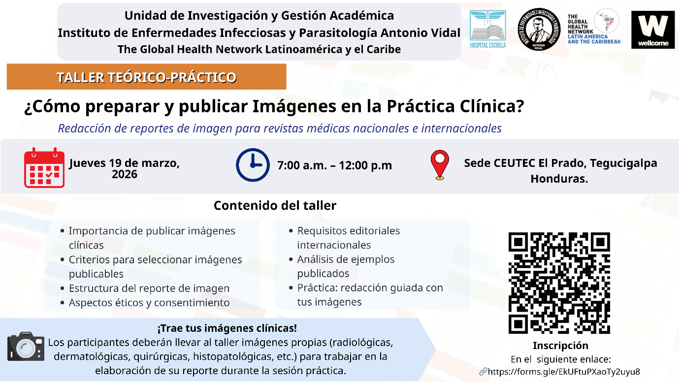 La actividad es organizada por la Unidad de Investigación y Gestión Académica del Hospital Escuela, el Instituto de Enfermedades Infecciosas y Parasitología Antonio Vidal, y el proyecto The Global Health Network Latinoamérica y el Caribe (TGHN LAC). El taller se llevará a cabo en modalidad presencial en la sede CEUTEC El Prado, Tegucigalpa, con una duración de cinco horas, de 7:00 a.m. a 12:00 p.m.